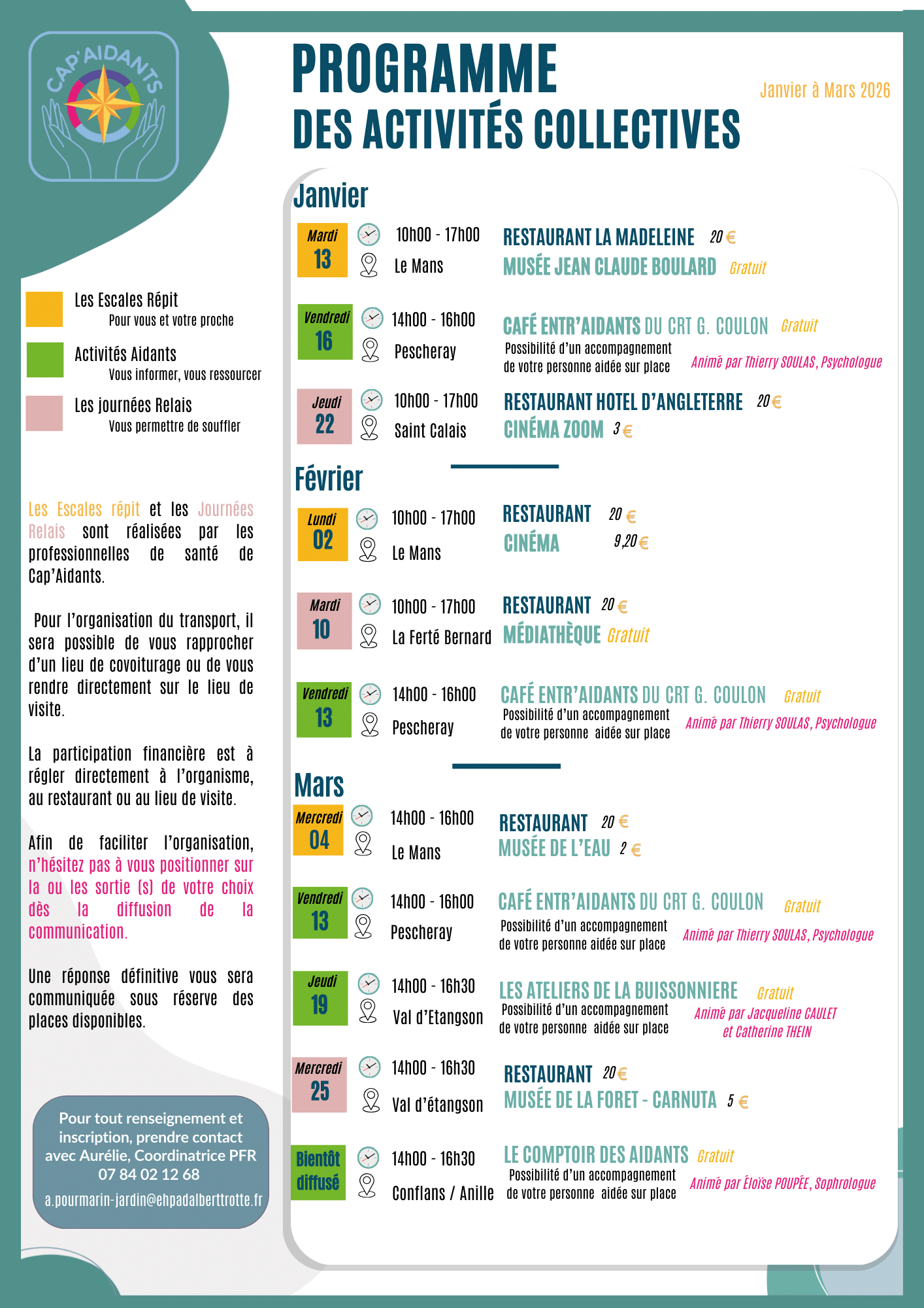 La plateforme de répit Cap’Aidants vous présente ses ateliers et actions collectives pour le premier trimestre 2026.